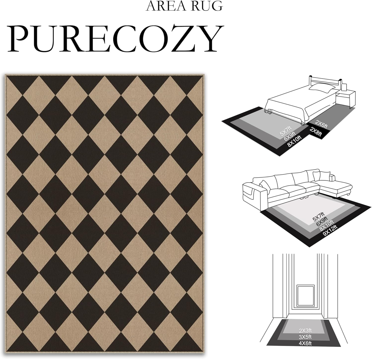 5x7 Checkered Easy Jute Area Rug for Living Room Checkerboard Washable Indoor Outdoor Carpet Farmhouse Patio Office Mat Geometric Non Slip Black Carpet for Backyard Dining Room