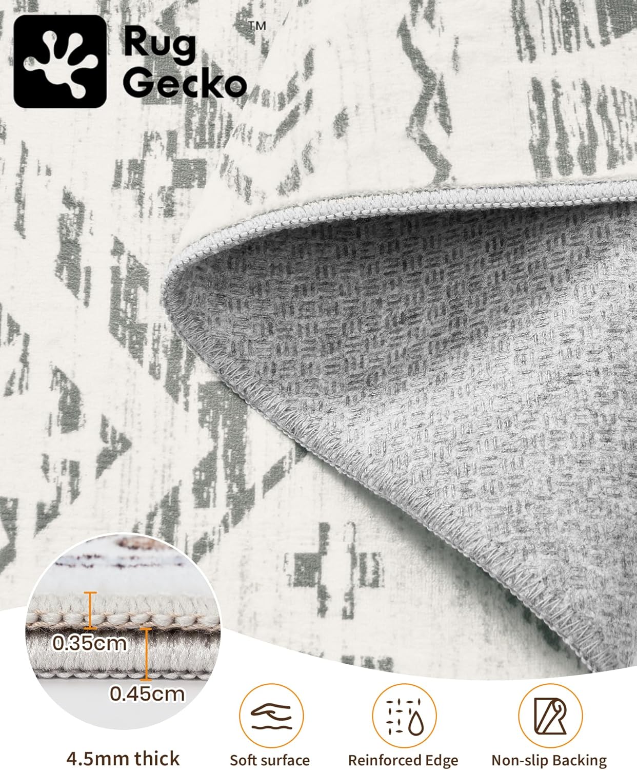 8x10 Area Rug for Living Room Moroccan Washable Rugs Non Slip Indoor Floor Carpet Foldable Large Soft Area Rug for Dining Room Bedroom with Low Pile(Grey,8'x10')