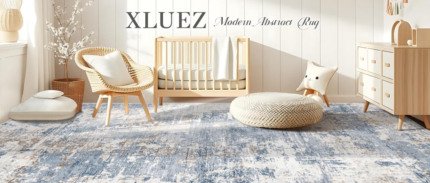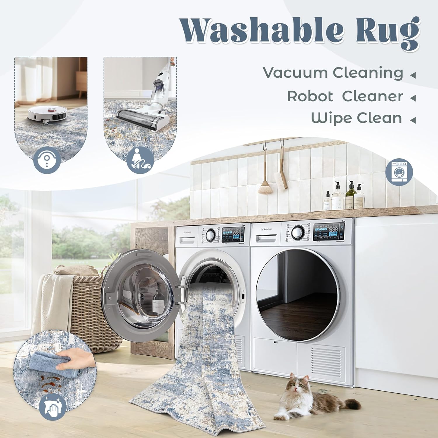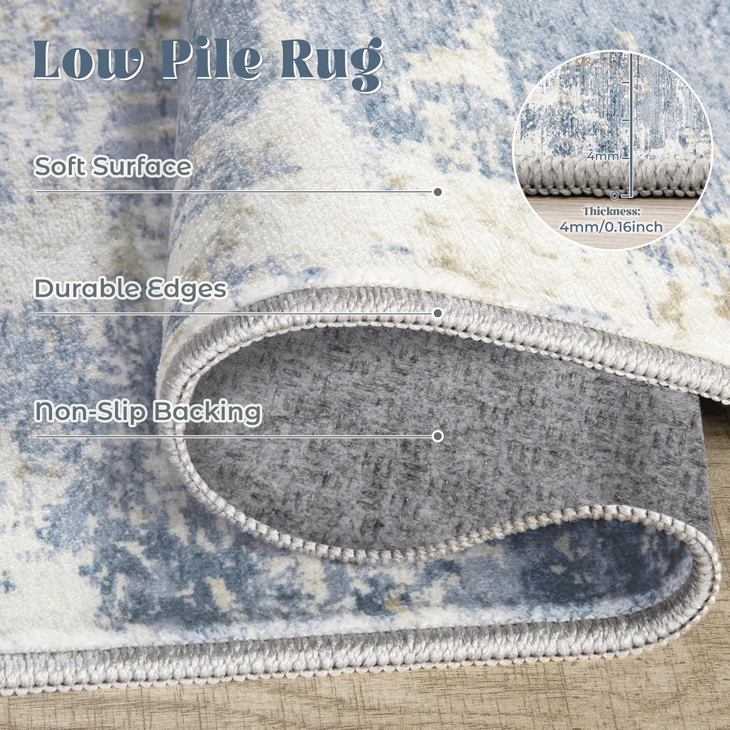 8x10 Area Rugs for Living Room, Washable Modern Abstract Large Area Rug Neutral Soft Non Slip Kids Rug Stain Resistant Indoor Carpet for Bedroom Nursery Dining Room Playroom Home Office(Blue, 8'x10')