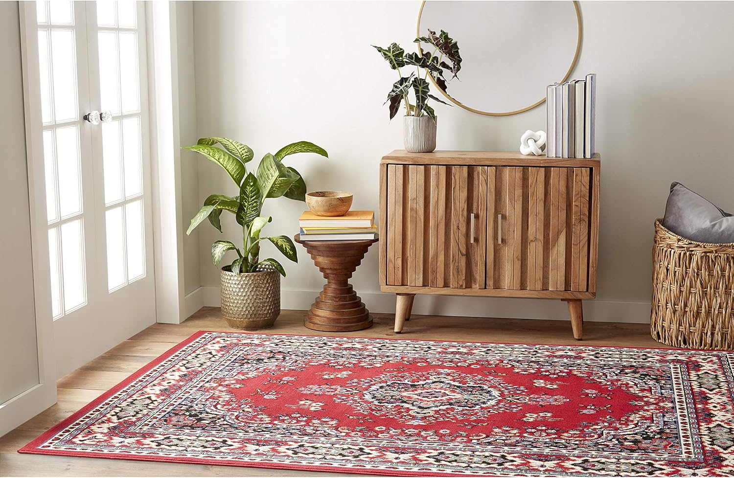 Garnish your floors with the Premium Sakarya rug collection by Home Dynamix. This Persian-inspired rug collection features traditional borders that frames scroll patterns and floral accents with center medallions that will complement your existing home décor. Machine woven from soft polypropylene yarns, these Premium Sakarya rugs are sure to give a cozy underfoot feel. Stain and fade resistant, these rugs will withstand the day-to-day wear and tear. Perfect for high traffic areas. Enhanced with durable jute backing that creates stability and provides long-lasting shape and beauty.