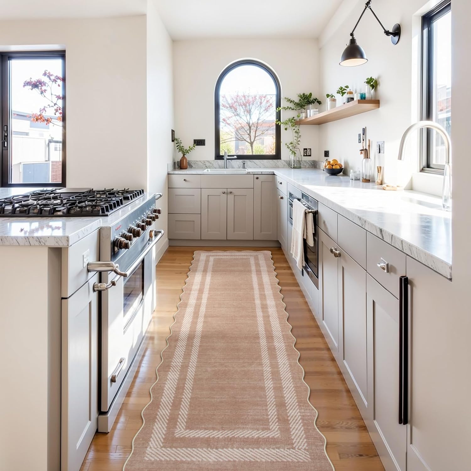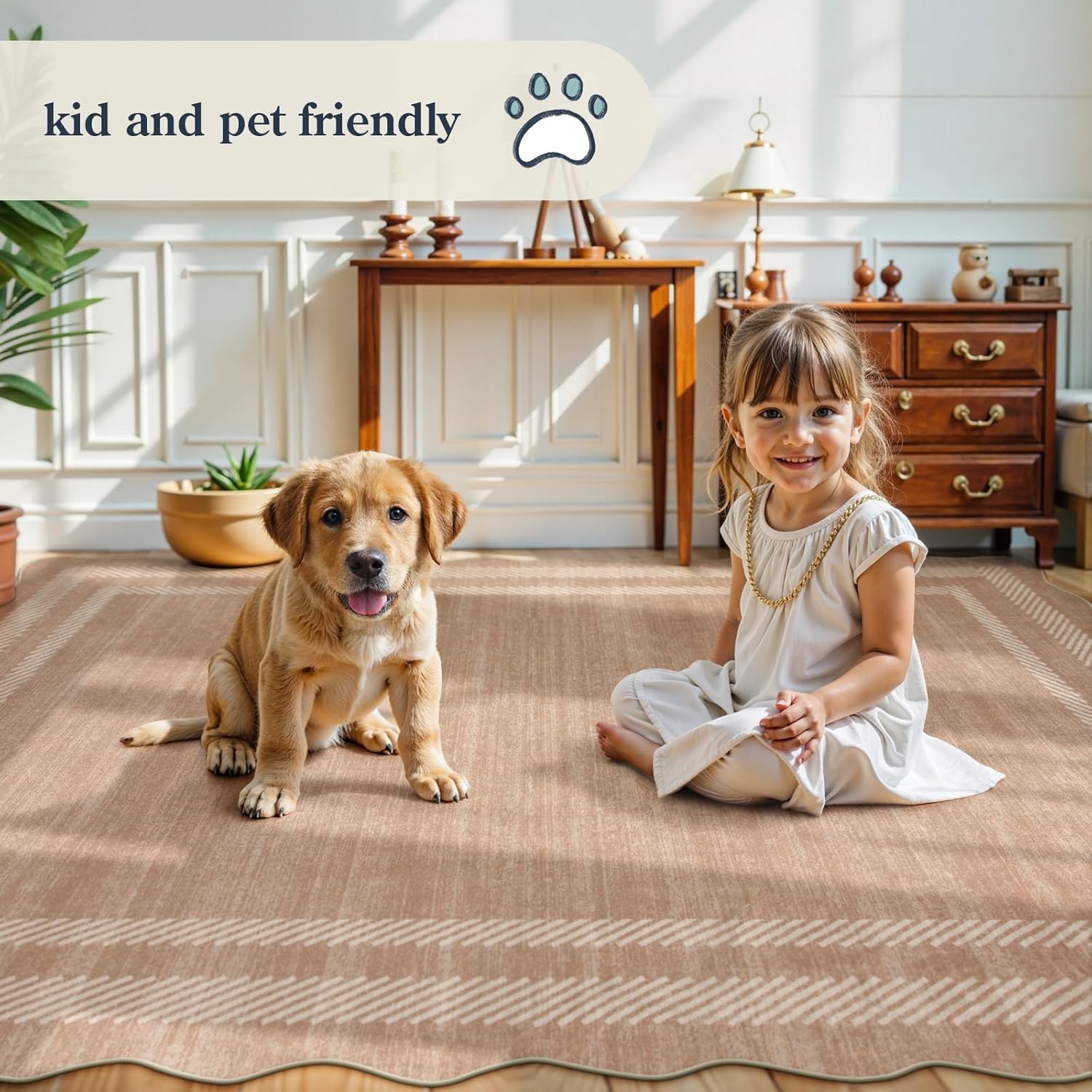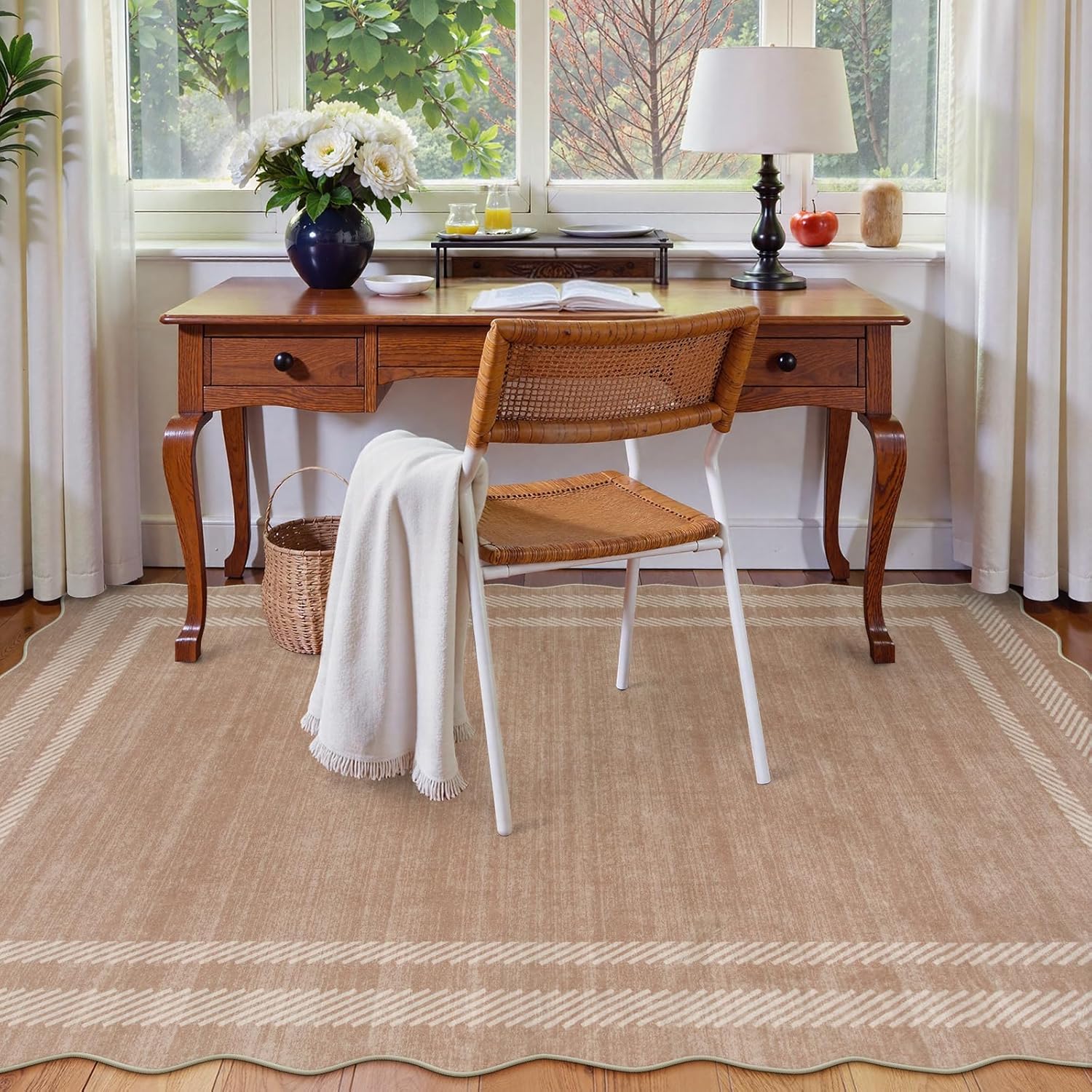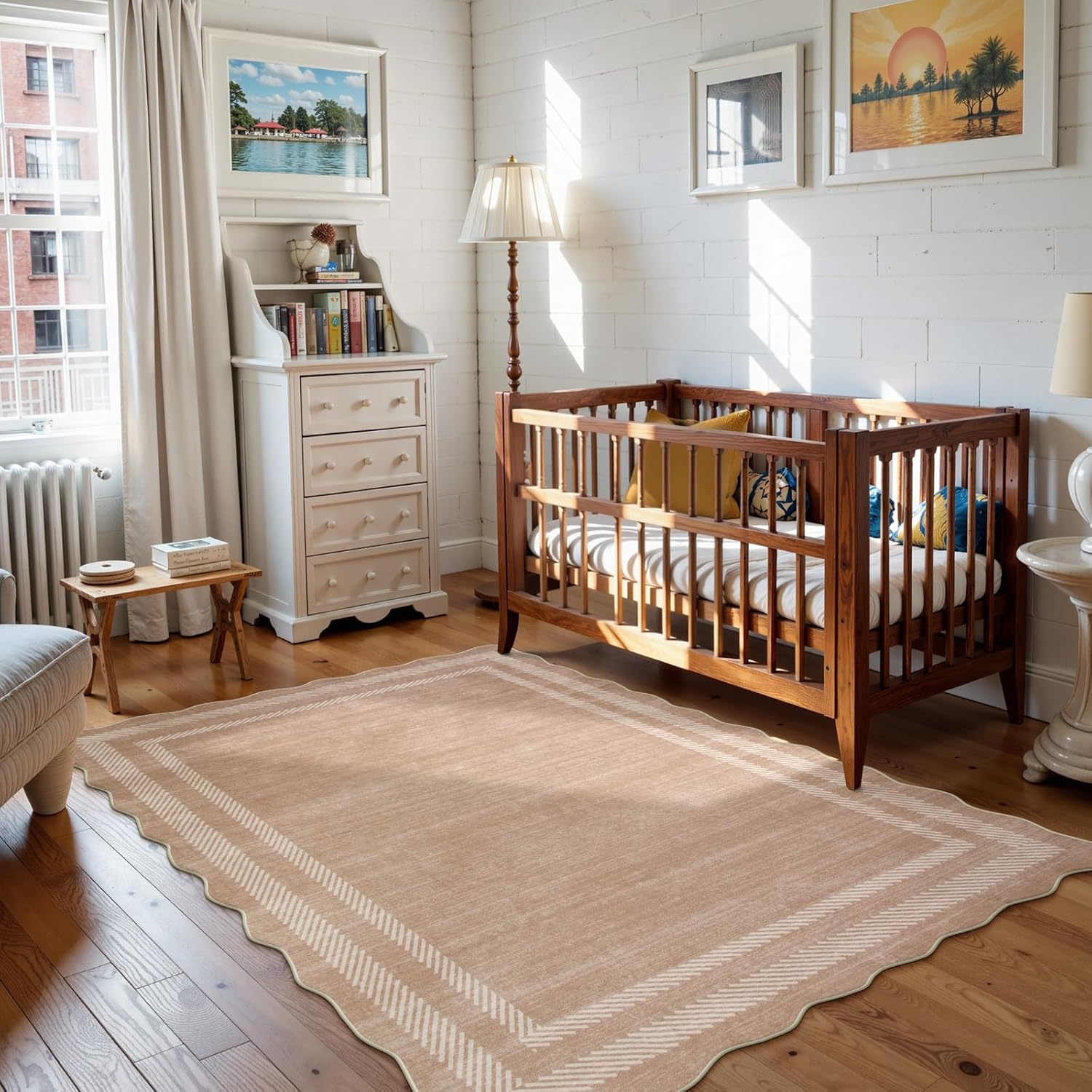 Lahome Scalloped Washable Area Rugs 5x7, Soft Nursery Rug for Bedroom Girls, Modern Bordered Ultra-Thin Non Slip Solid Throw Carpet for Living Room Classroom Office, Mauve/Pink