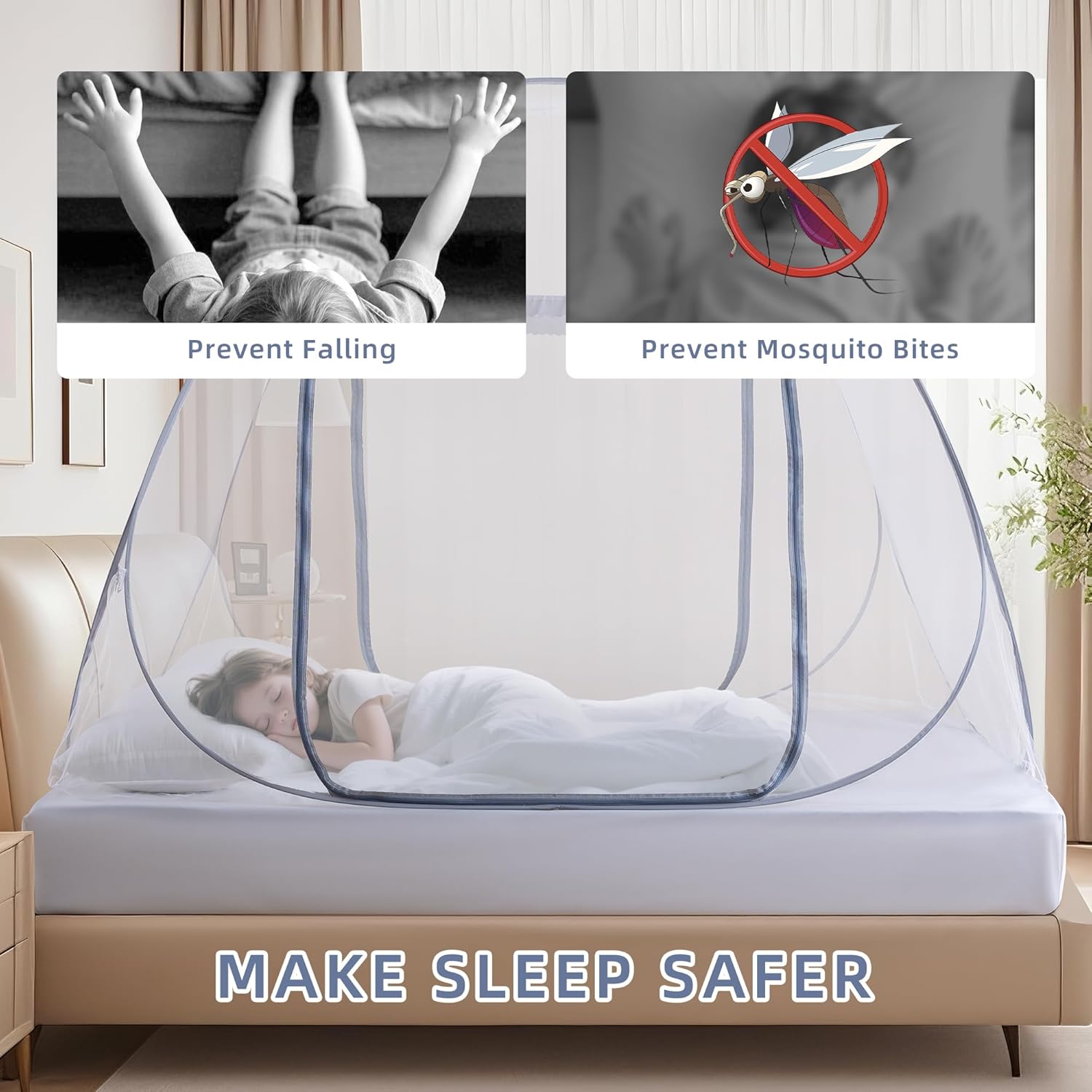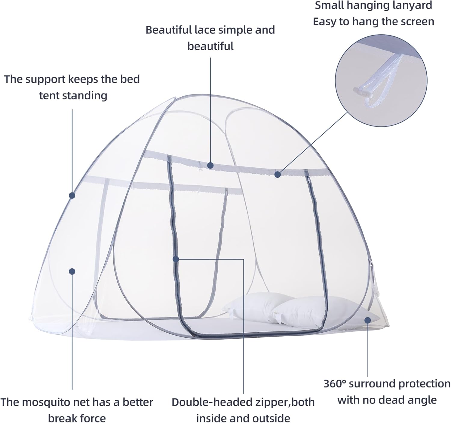lazyzzz Pop-Up Mosquito Net Tent for Bed,Portable Folding Design Outdoor Camping Tent with Net Bottom for Baby Adults, Easy to Install and Wash for King Queen Size Bed 79 x 59 x 59 inch