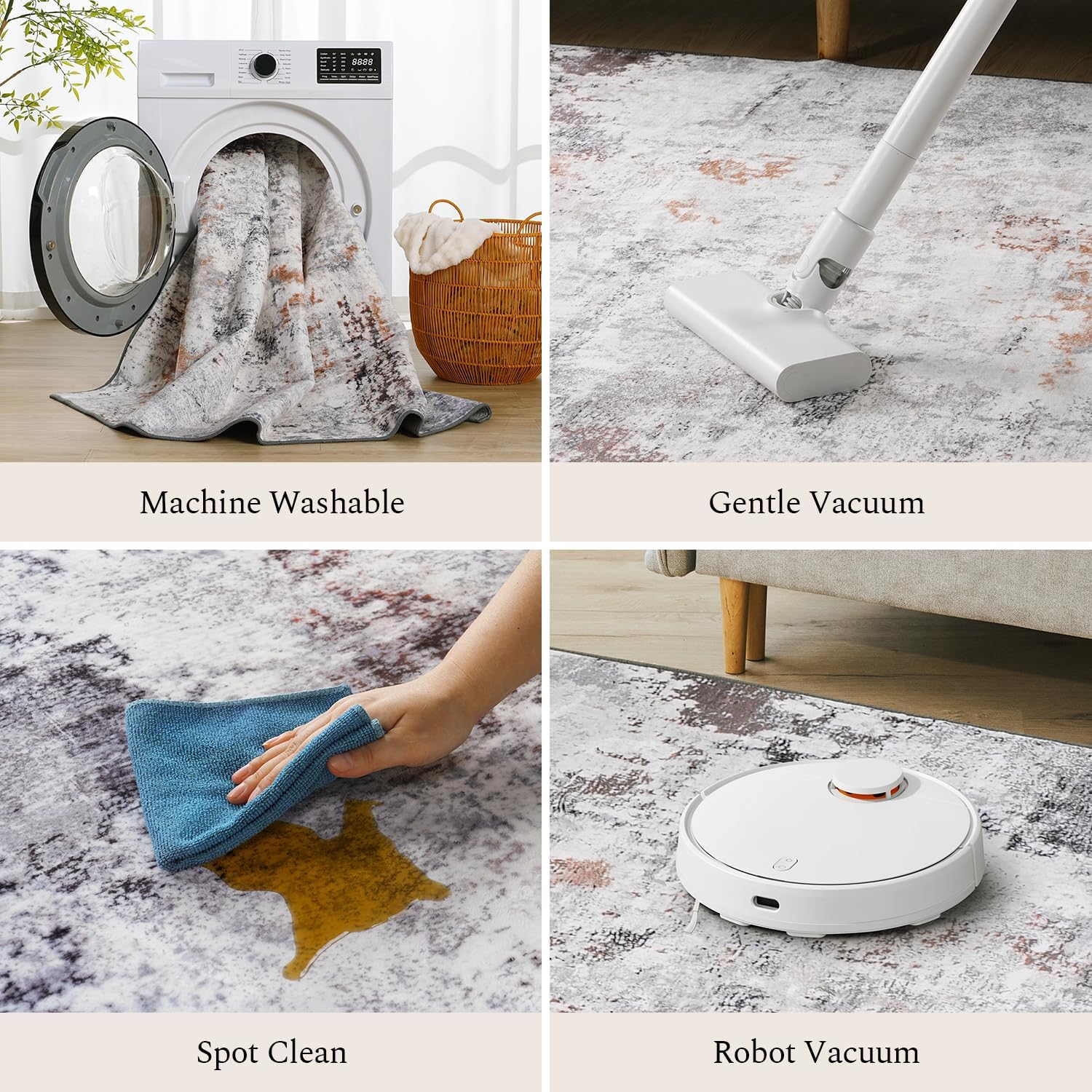 Rugflix 8x10 Area Rugs for Living Room, Washable Large Rug Stain-Resistant Low Pile, Modern Neutral Carpet for Dining Room Home Office Kid Room Nursery Bedroom, Grey Brown