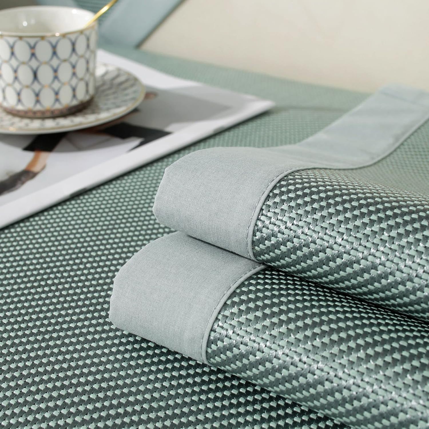 Square Cooling Bedding Mat,Ice Silk Rattan Matting, Jacquard Foldable Mixed Materials of Ice Silk & Rattan,冰藤席 (Green, Queen)