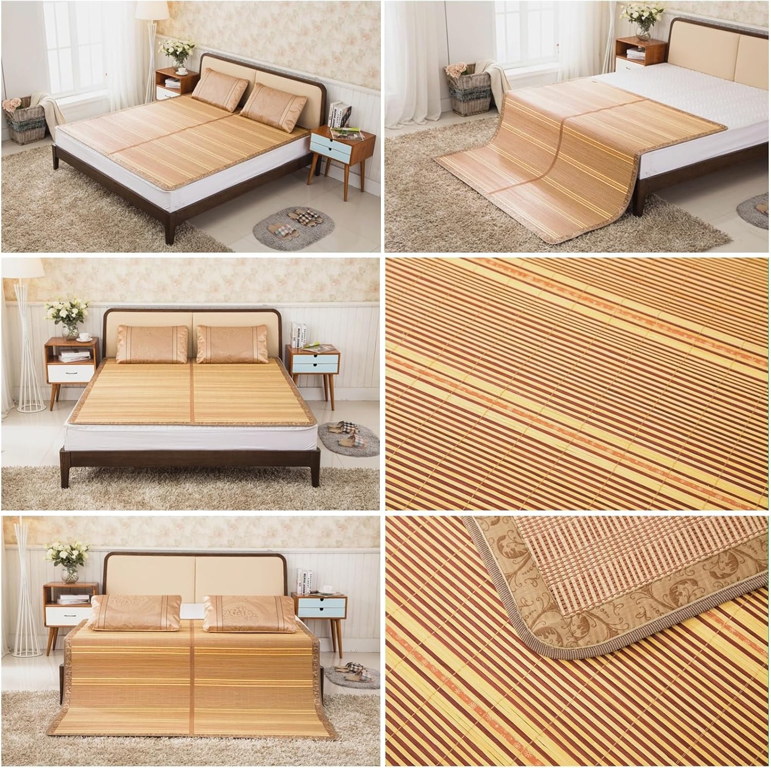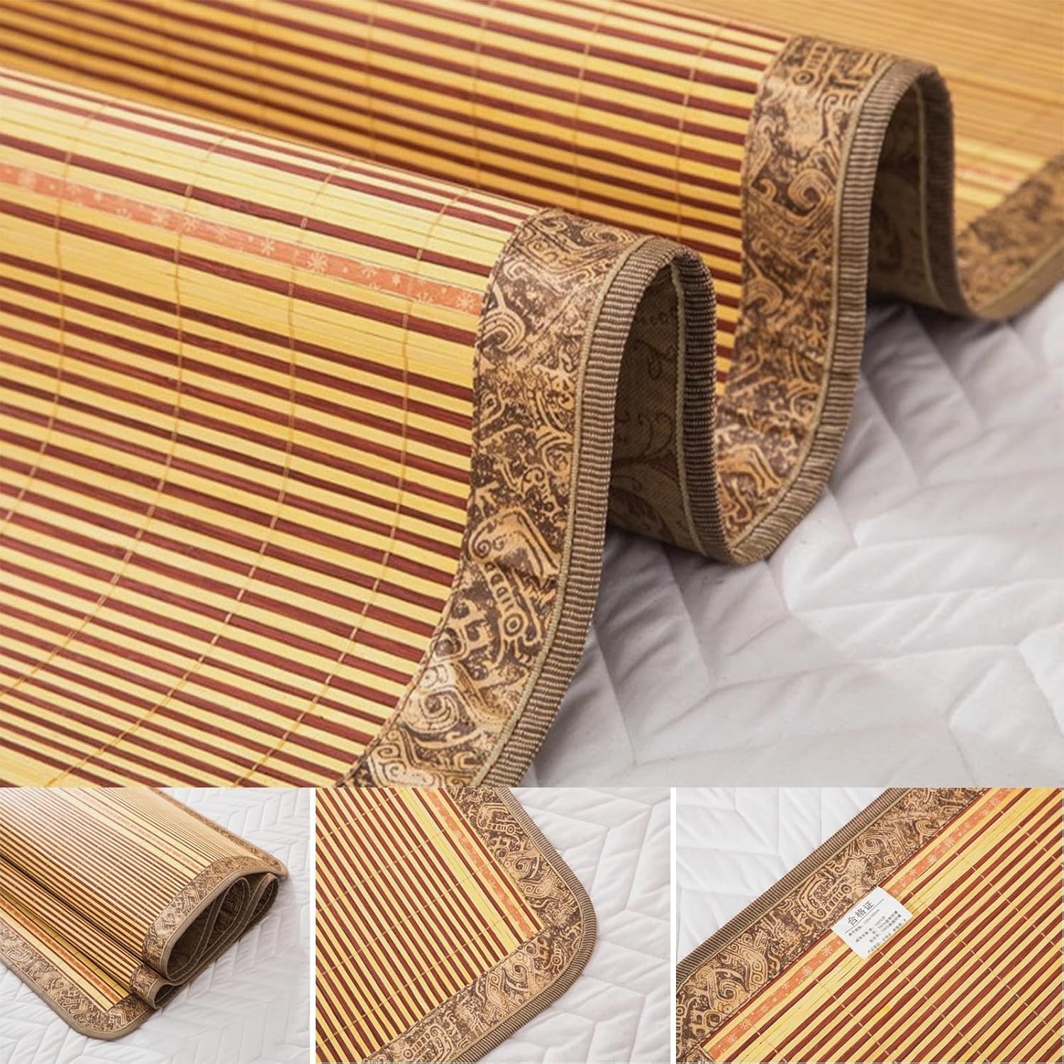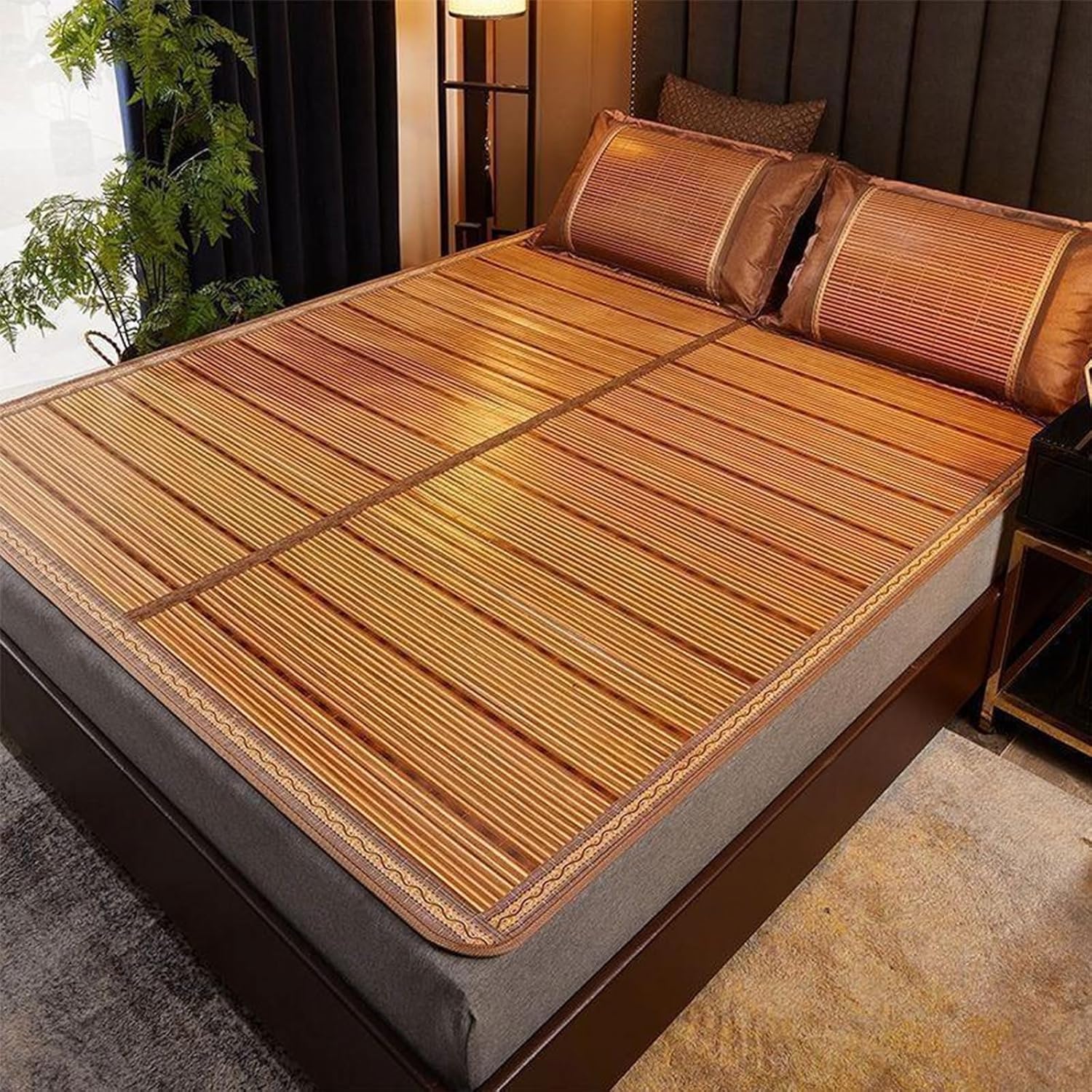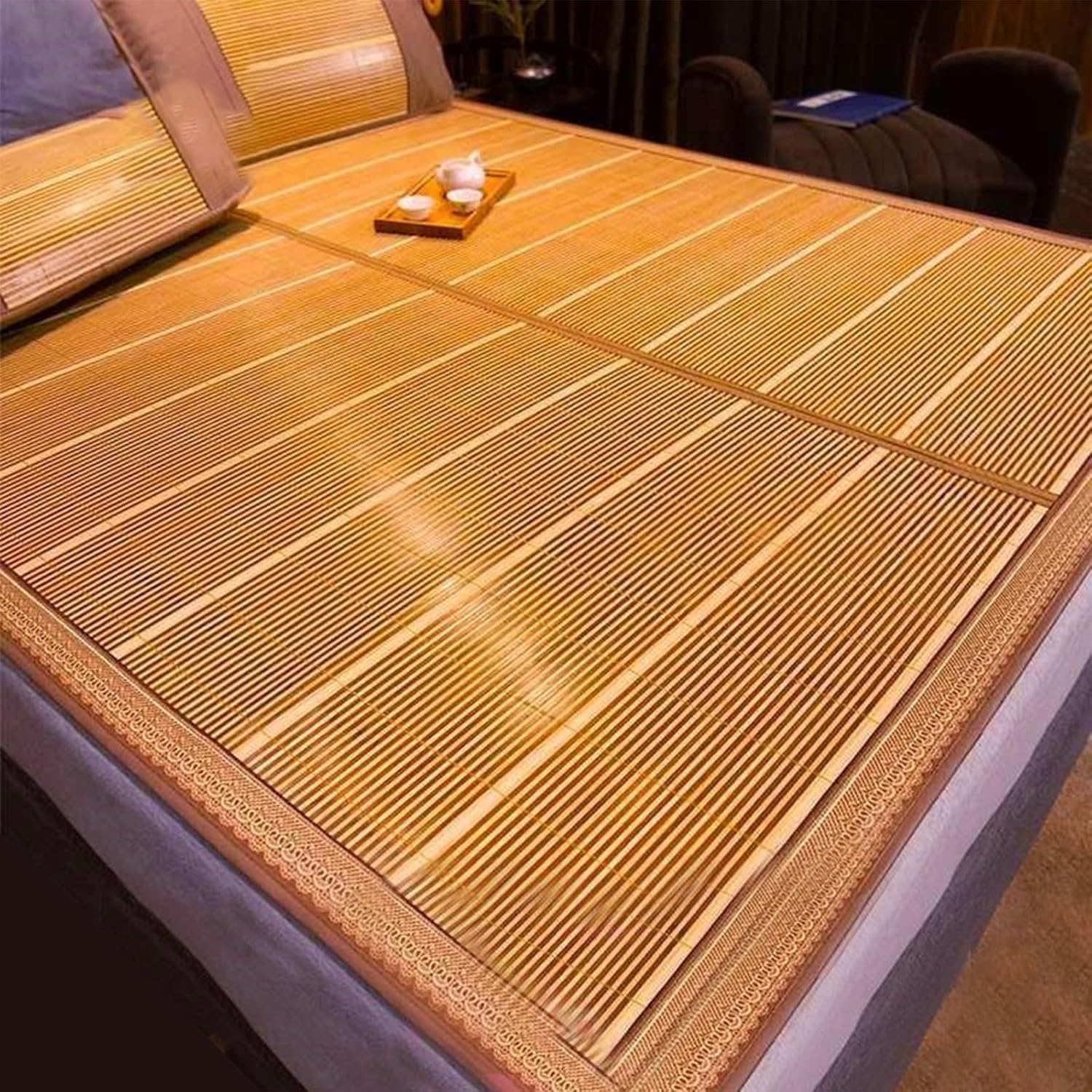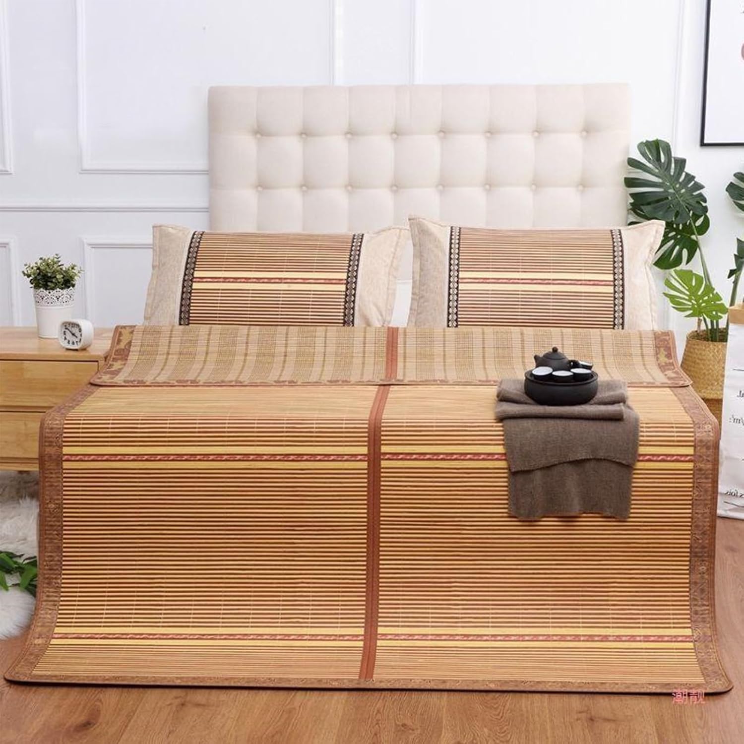 Summer Bamboo Sleeping Mat, Bamboo Summer Sleeping Mat, Bamboo Rugs for Living Room, Rattan Mat, Double-Sided Use,Student Single Double Bed Foldable Refreshing Breathable Sweat Bedding