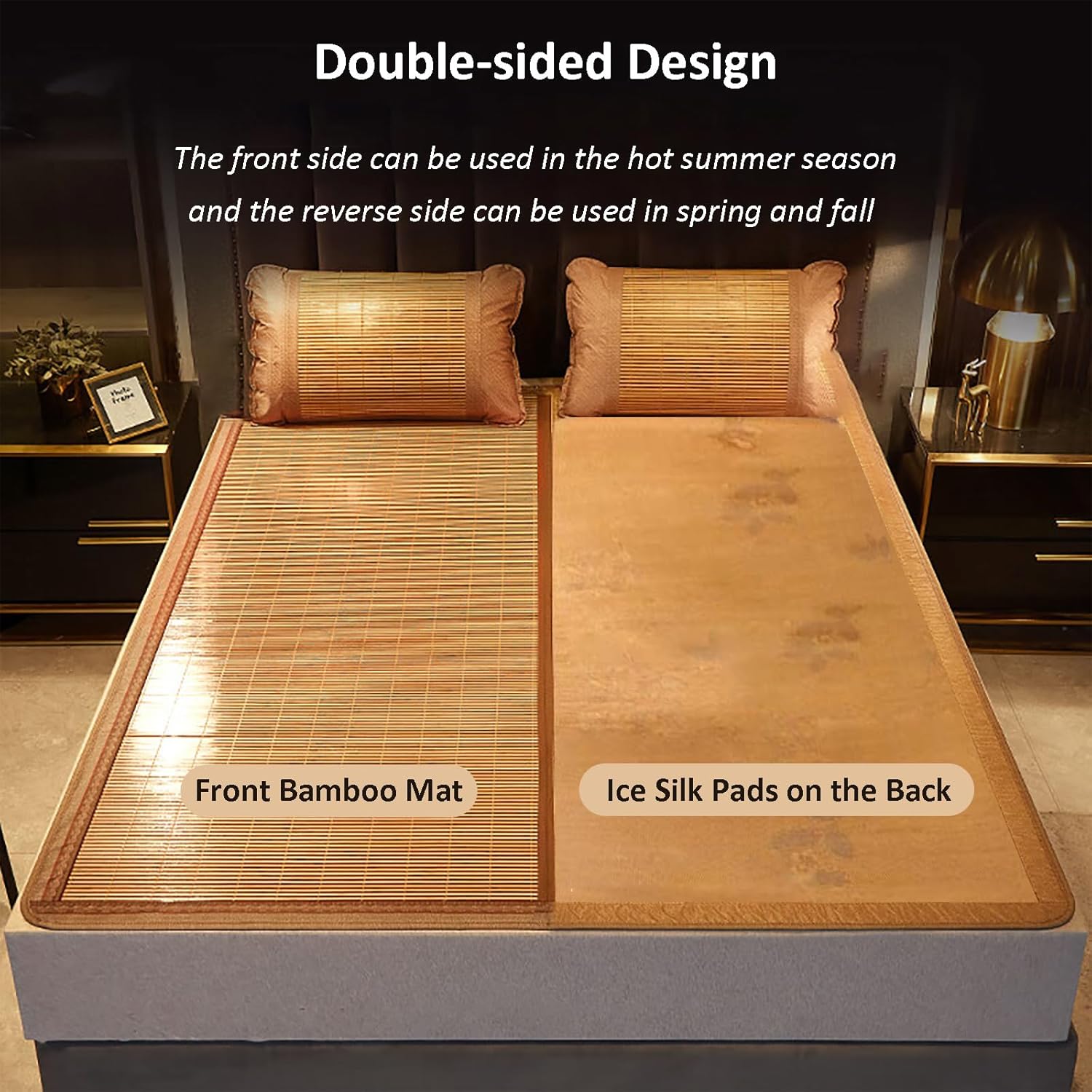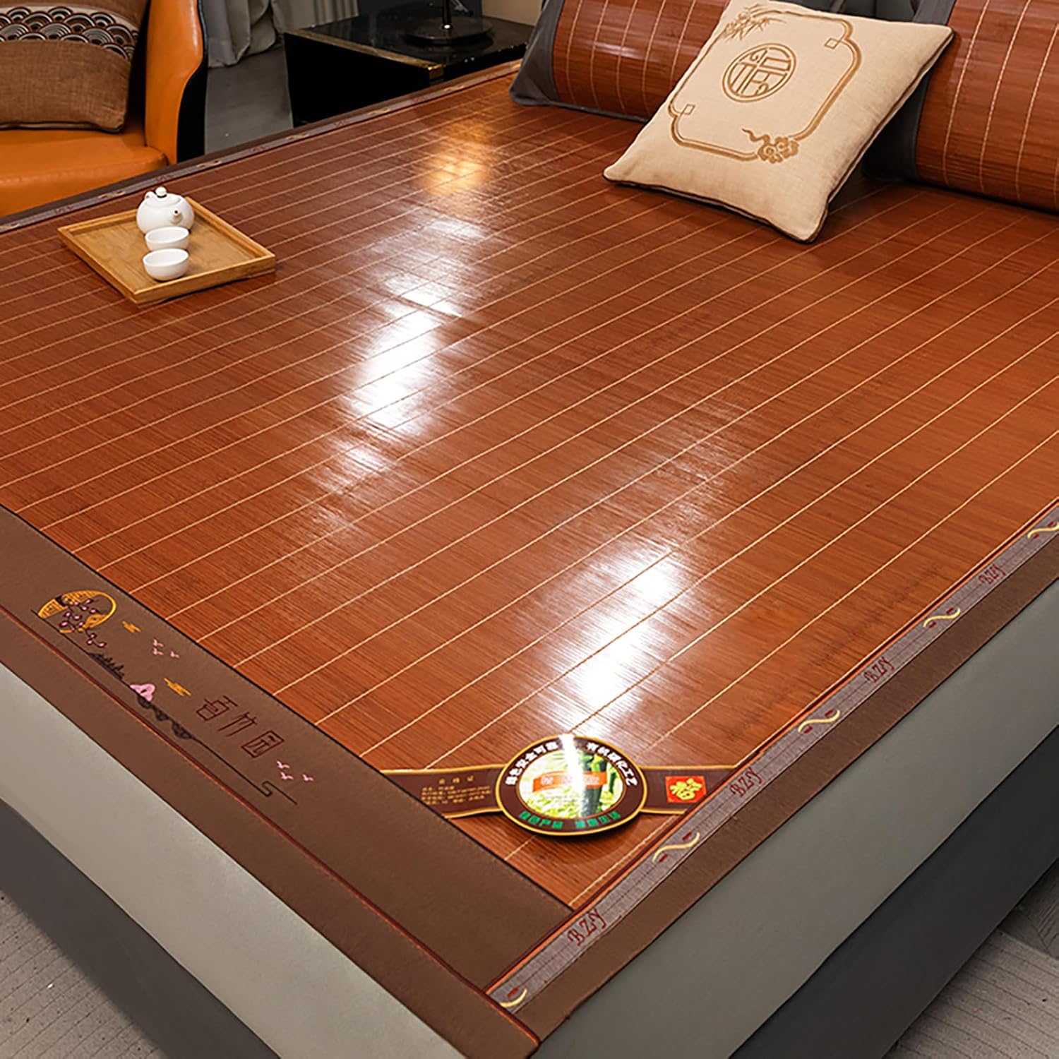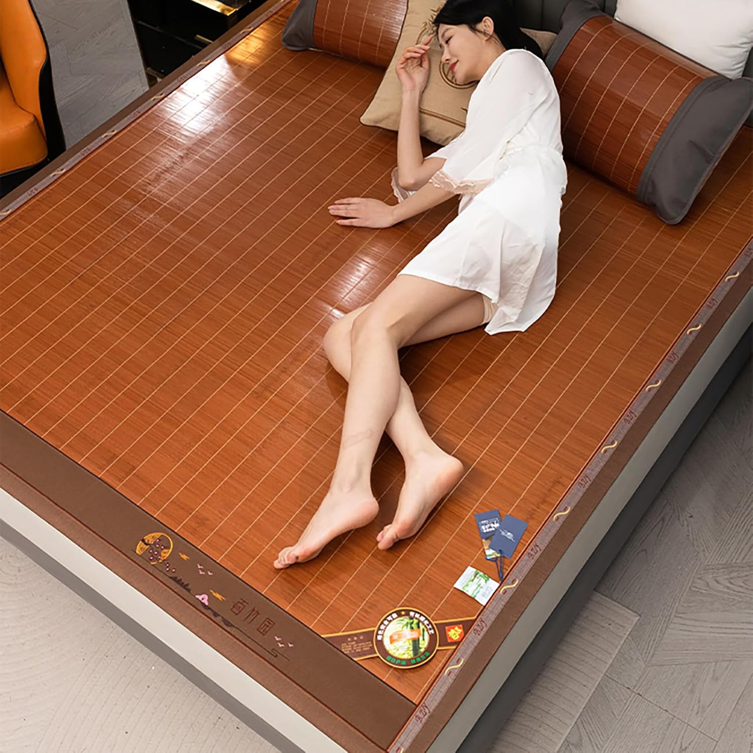 Summer Bamboo Sleeping Mat, Double Sided Mat for Bed, Breathable Carbonized Bamboo Mattress Topper Air Conditioning Mat for Twin/Queen Living Room Dormitory