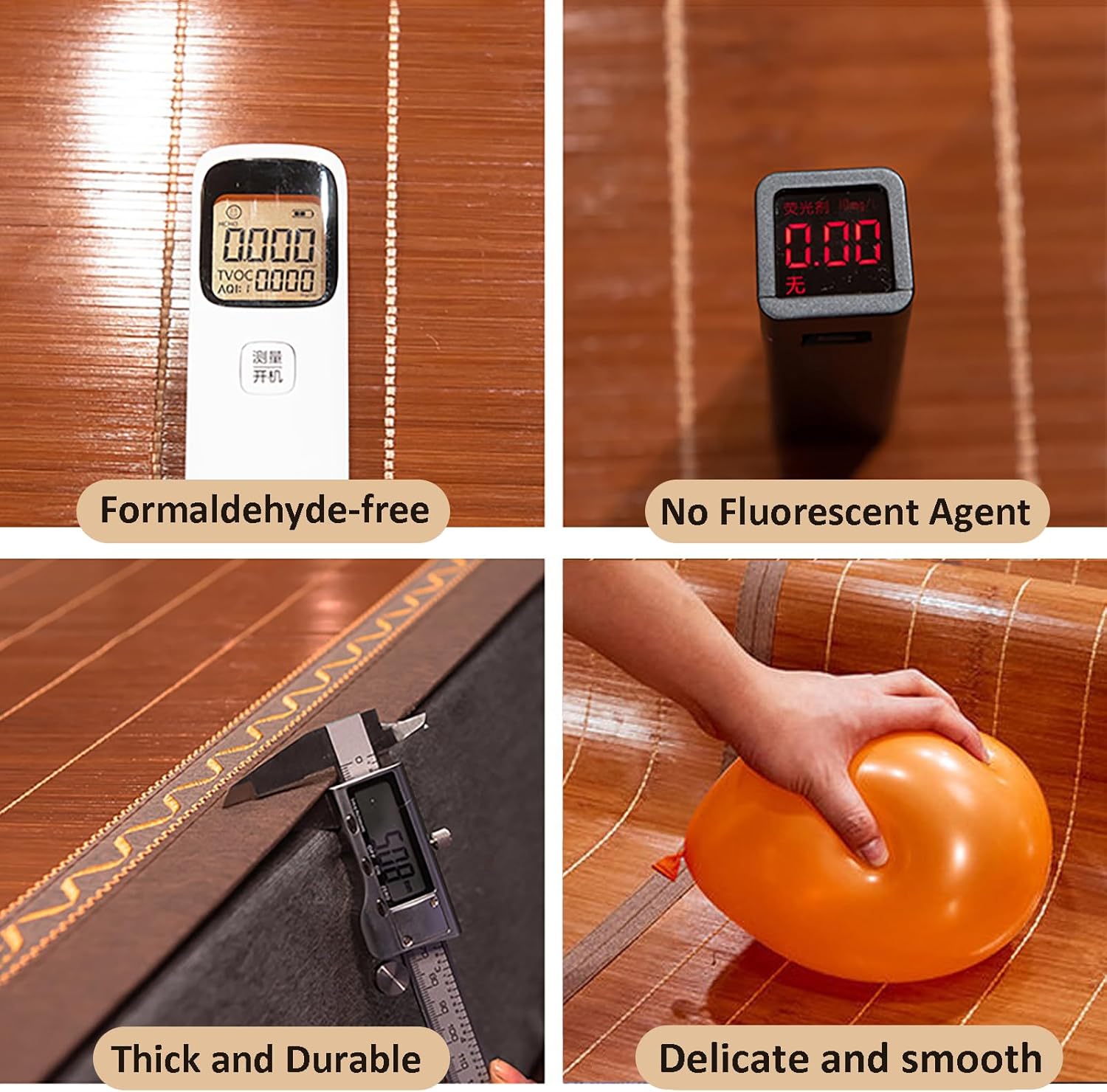 Crafted from natural Nan bamboo strips, this mat undergoes high-temperature carbonization for enhanced durability, smoothness, and resistance to deformation. It is a natural material with a light fragrance. The surface of the rattan mat is smooth and close to the skin without pricking, delivering a naturally cool sleeping experience that makes it the perfect choice for those seeking ultimate comfort during hot summer nights.