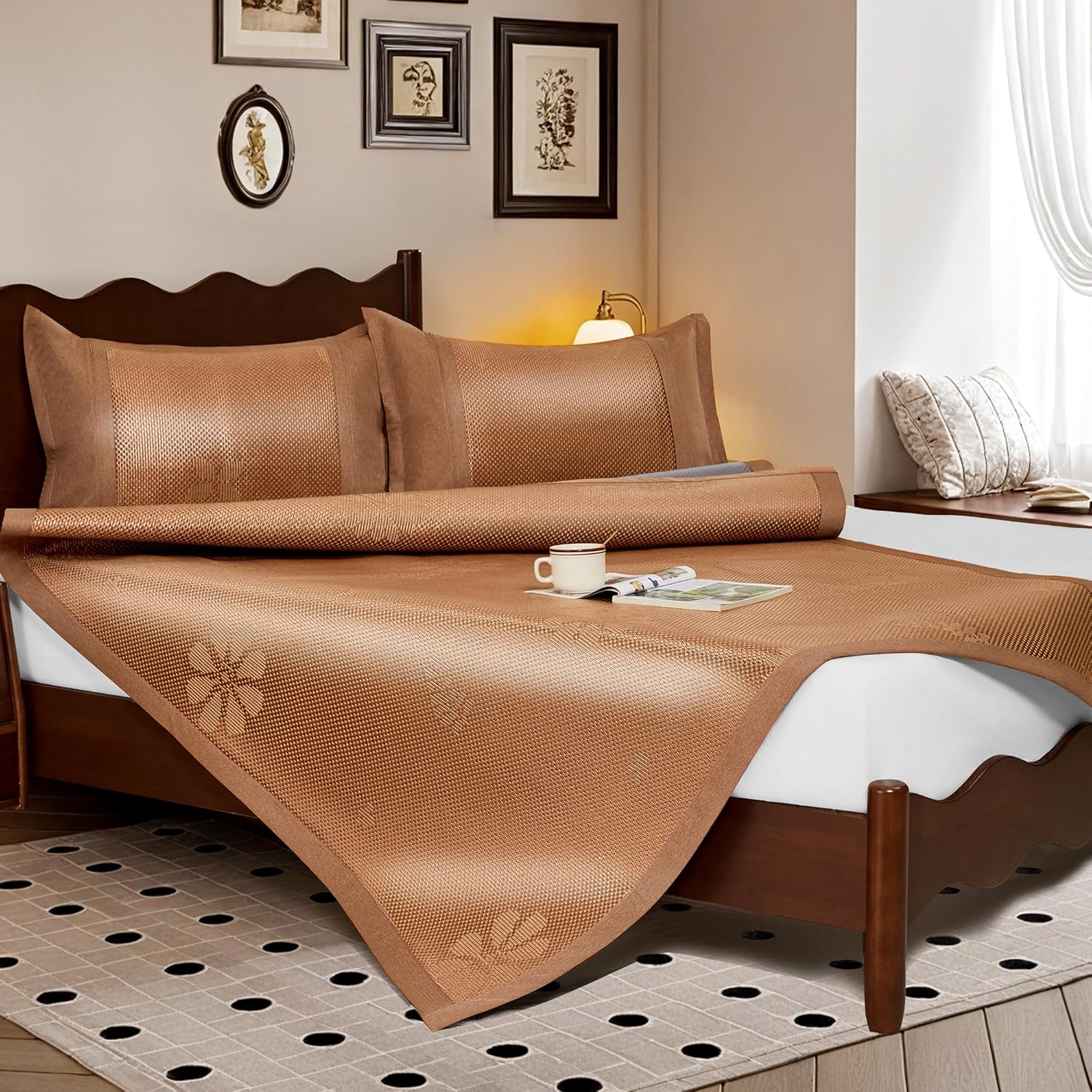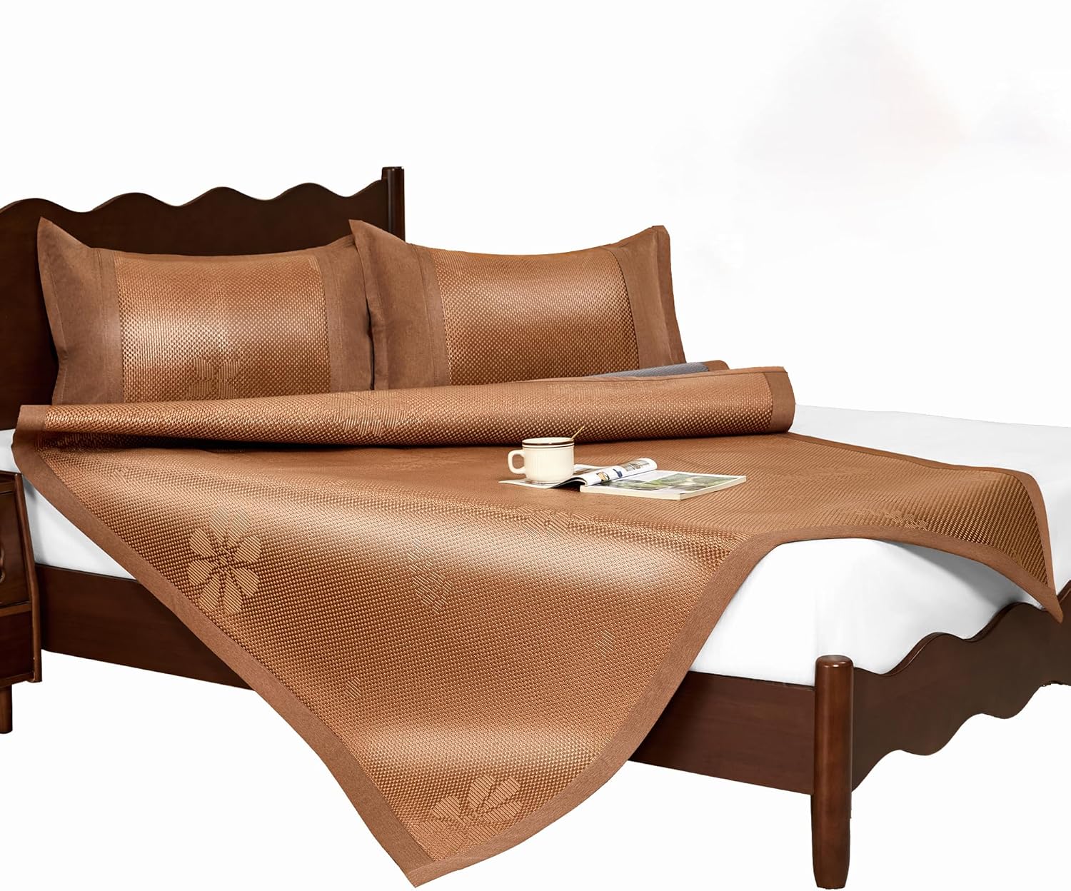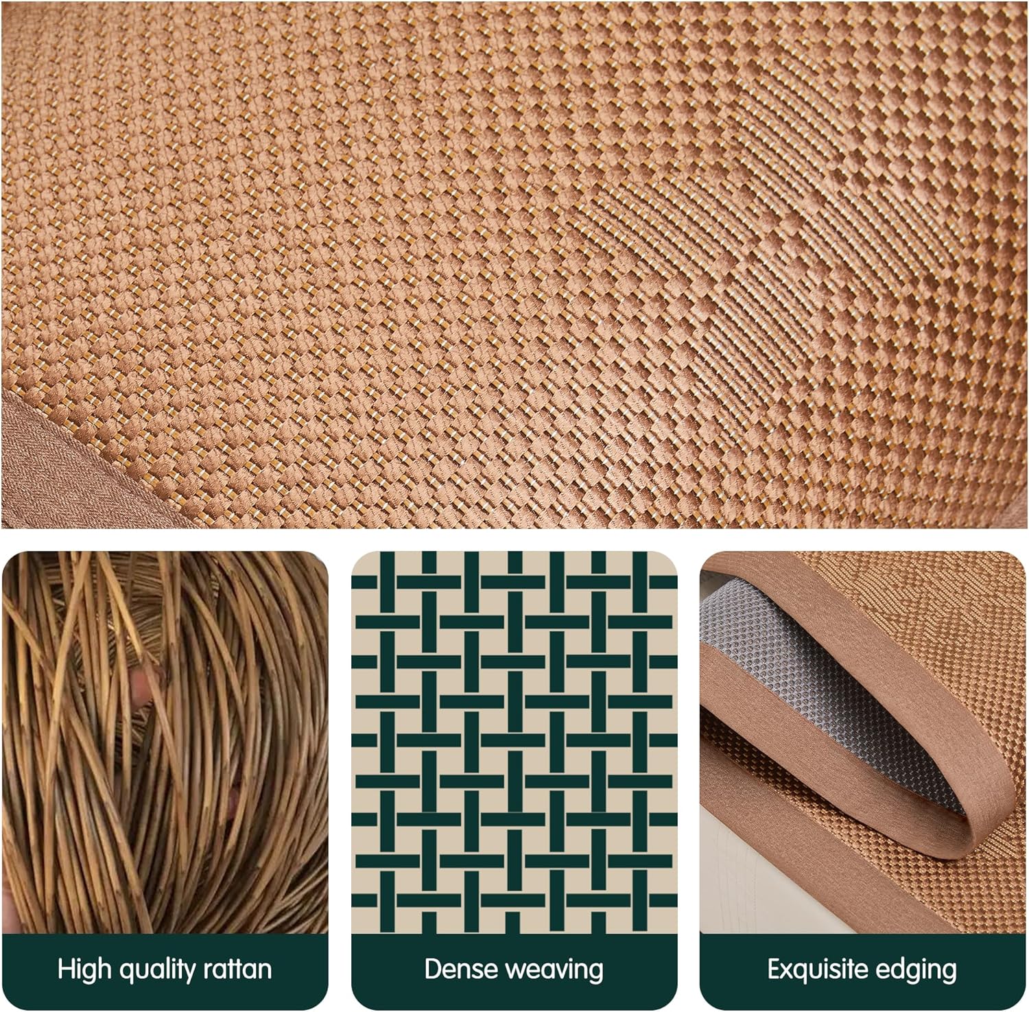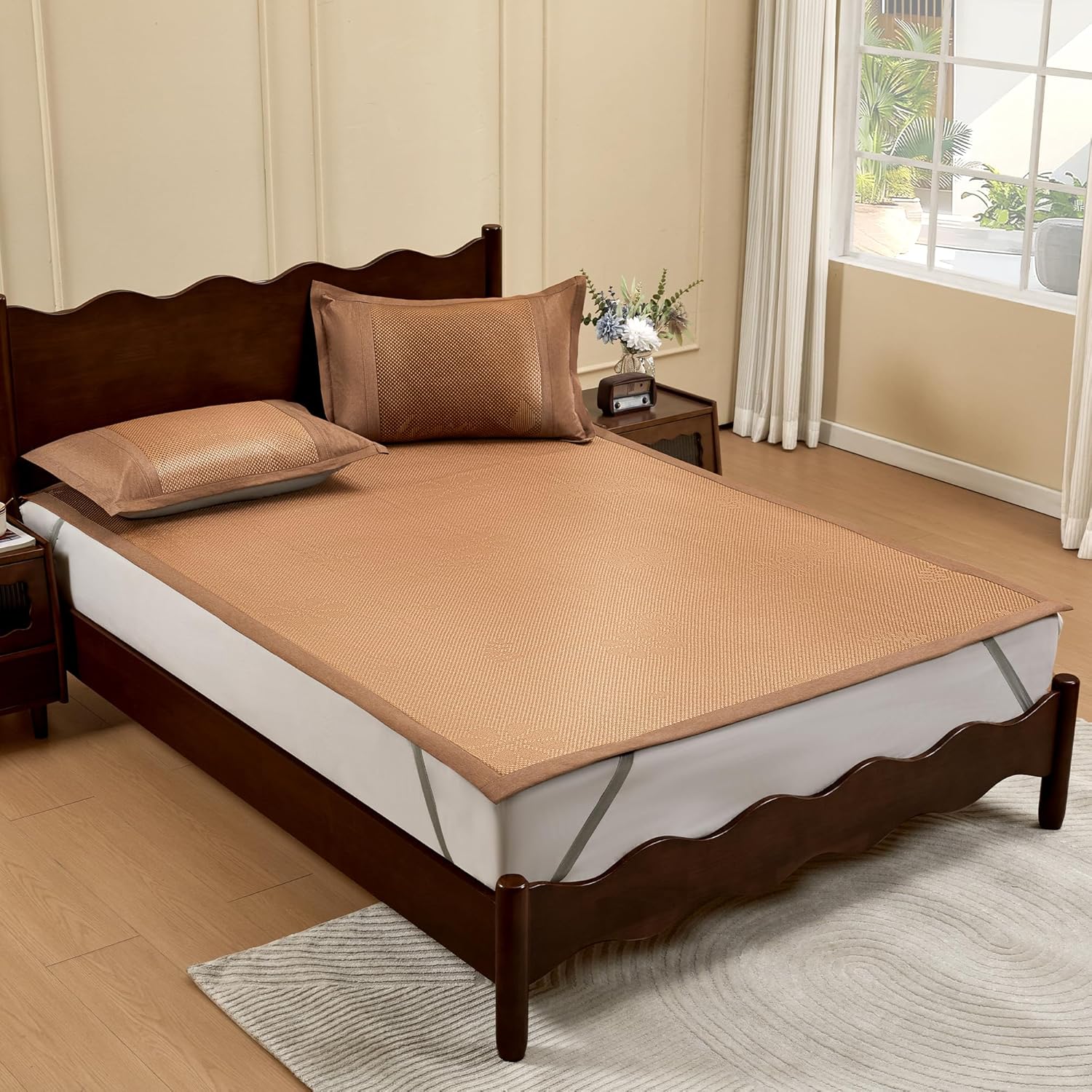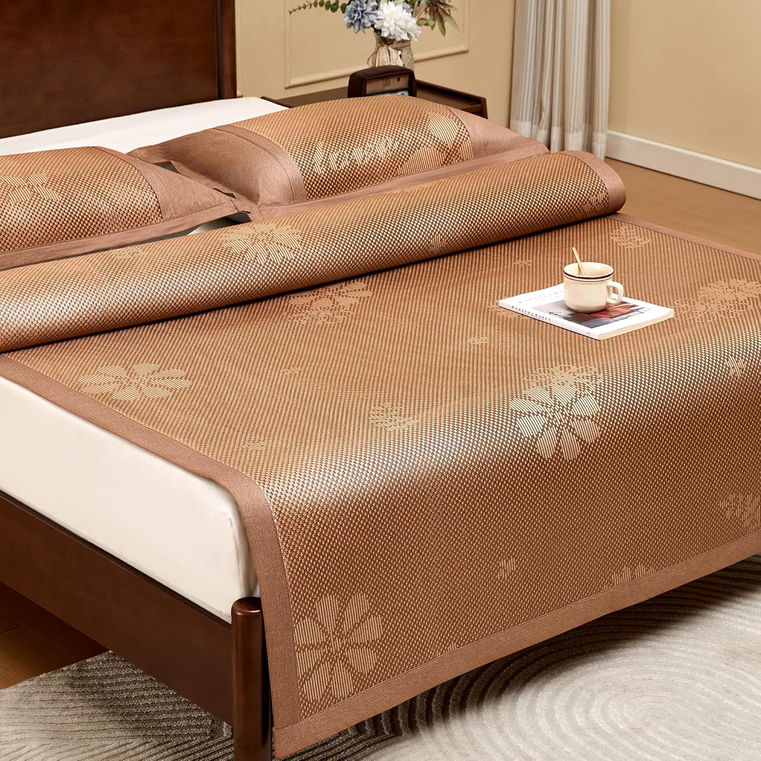 Summer Sleeping Mat, Foldabl Rattan Bed Mat Quick Cooling Topper Mat Double-Sided use for Home School Dormitory (Queen)